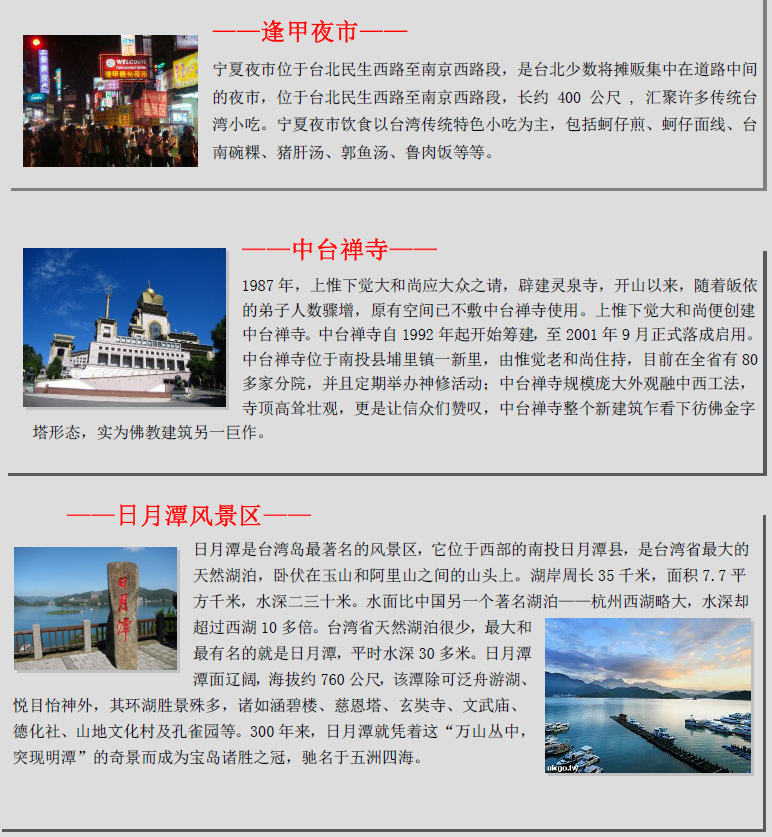 文化,臺灣雖然沒有咱們大陸燦爛悠久的歷史人文和風(fēng)景名勝,但臺灣卻非常好的保留了中國傳統(tǒng)文化中的儒釋道精神,臺北故宮、誠品書店等已經(jīng)成為臺灣文化的象征。